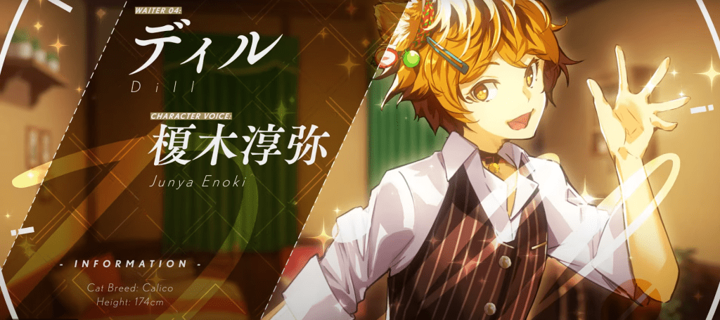 Dill is a very approachable catboy who can make friends with practically anyone. He is a big fan of fashion, which explains why his biggest worry is buying too many clothes. Sometimes he picks clothes for you or helps you with makeup.