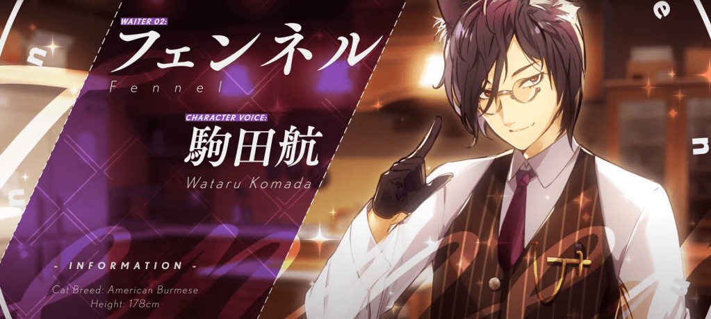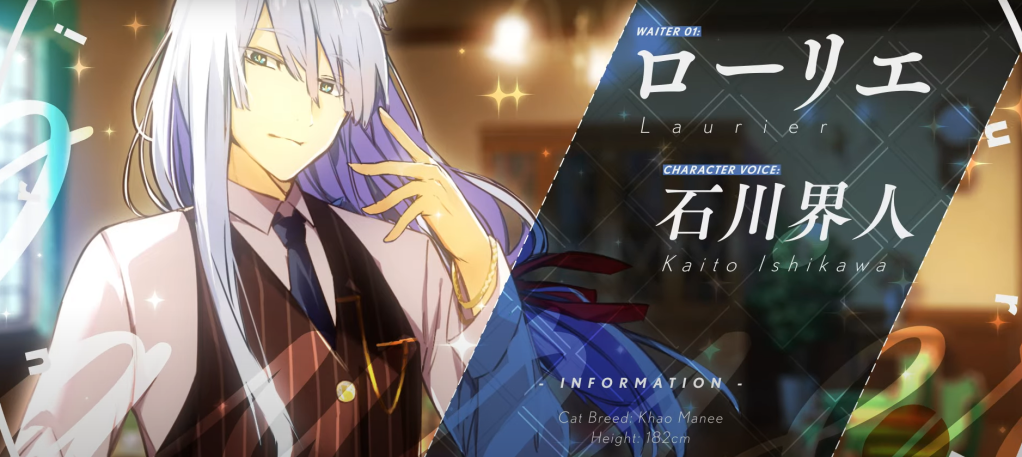 Laurier appears to be a lazy catboy that takes naps whenever he can. When it comes to work, however, he always does his job perfectly. Due to his friendliness and handsome appearance, he is very popular with female customers. He is actually a talented catboy who can achieve anything if he sets his heart to it.
