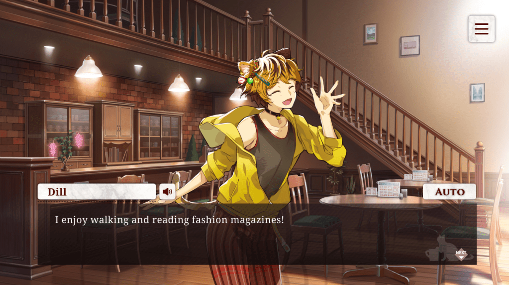 A catboy who’s willing to do your hair and make-up?! YES PLS! Dill’s character surprisingly astounded me with his thorough Anastacia Beverly Hills beauty-guru knowledge (from shampoos to what make-up brushes to use, he knows it all! lol) Dill can also get a bit clingy, possessive, and a little jealous, but in a cute kind of way, a common trope that is always welcome in my otome book. Oddly enough, I found myself enjoying him more in other routes than his own. Needless to say, his story was still ultimately sweet and will surely put a smile on your face.