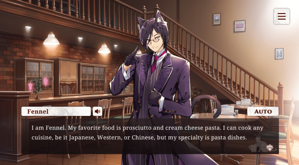 There are no route orders, so you’re free to pick whichever catboy route you’d want to start first. I played and enjoyed mine in this order: Fennel – Lauriel – Sage – Dill.