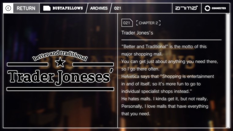 I also enjoyed BUSTAFELLOWS’ funny parodies and direct references to American locales and landmarks. E.g. Time’s Square (Central Core), Coney Island (Sunny Island), New York Times (New Seig Today), Trader Joe’s (Trader Joneses’), ELLE Magazine (Fashion Magazine “L”), and I think “Olivia Lee” in the game was a reference to the famous young photographer in Brooklyn, Olivia Bee. They’ve also brought up lots of western media references like NY’s Fashion Week, the Casablanca star Ingrid Bergman, Calamity Jane, and the movie Snowden. Just from these minutiae of American culture alone, you can tell that the writers comprehensively did (and had fun with) their research.