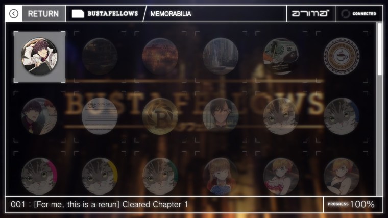 I believe it took me a total of 40-45 hours to complete BUSTAFELLOWS, including unlocking its extra contents, such as the game’s ‘Archives’ section and ‘Memorabilia’. The length of the game was very optimal, and I wouldn’t have it in any other way. All of the routes consist of two different endings (Good and Bad), except for Limbo’s, which curiously had two bad ends.