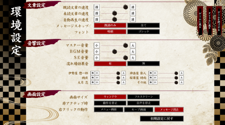 There wasn’t anything special with the game’s UI. It was simple and comfortable. I love that the title screen changes after finishing an LI’s a route. I played the original PC version of Yoshiwara Higanbana in Japanese. Well…to be perfectly honest, I bought the Chinese version of this game on Steam last year, played the entire common route, dun clowned myself when I realized it was not the 18+ version I thought it was.🤡🤡🤡 So, I made the call and bought the physical JP 18+ version online (I wanted the full R18 experience okay!).😤 Because it was an older game, it was hard to find and oh boy! it wasn’t cheap either, but heck, it was worth every penny! If anyone’s interested, I bought my physical copy on Amazon Japan.