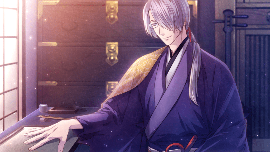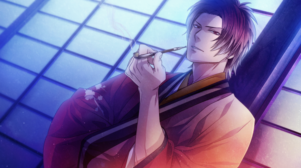 In his route, he and Rin (the protagonist) engage in the forbidden love of a courtesan and a brothel worker. It is said that when a couple is caught having these types of relationships, the courtesan will be beaten to death or sold, while the (commoner) man will be punished & locked up in prison. Primarily at present, Sakuya had the toughest life out of all the love interests in this game. He’s the only guy who cannot bed Rin because he doesn’t have the money for it, 😢 and any sign that he’s having an affair with the heroine, was carefully kept hidden. Even their subtle friendly greetings needed to be minimized, just so it wouldn’t raise any suspicions from anyone. It pained me to see Rin and Sakuya trying their best to hide their taboo relationship when all they really wanted was to be in each other’s arms.😭