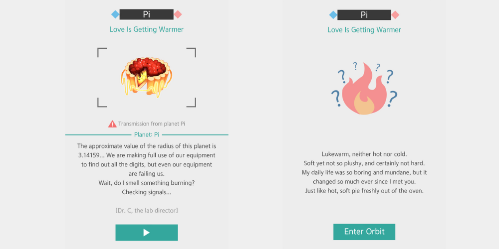 - (Confirmed) Teo and Harry’s timelines are indeed parallel. However, it only starts on the 30th day of both their routes. Specifically, the moment we started orbiting Planet Mewry (in Teo’s Route) and Planet Burny (in Harry’s Route). I’ve included some bonus clips (from Teo’s route) on scrapbook Day 44, & Day 47 above, to confirm this even further.