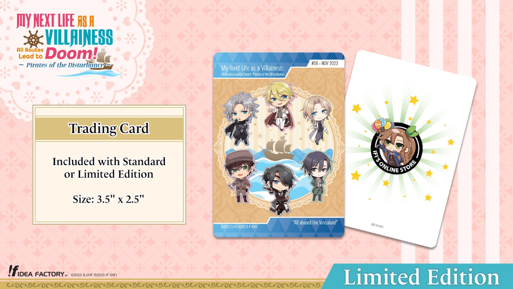 Idea Factory International proudly reveals the contents of the Limited Edition for the sea-faring otome title, My Next Life as a Villainess: All Routes Lead to Doom! -Pirates of the Disturbance-! Preorders for this stunning Limited Edition set will be available at the IFI Online Store on October 25 at 10AM PDT.