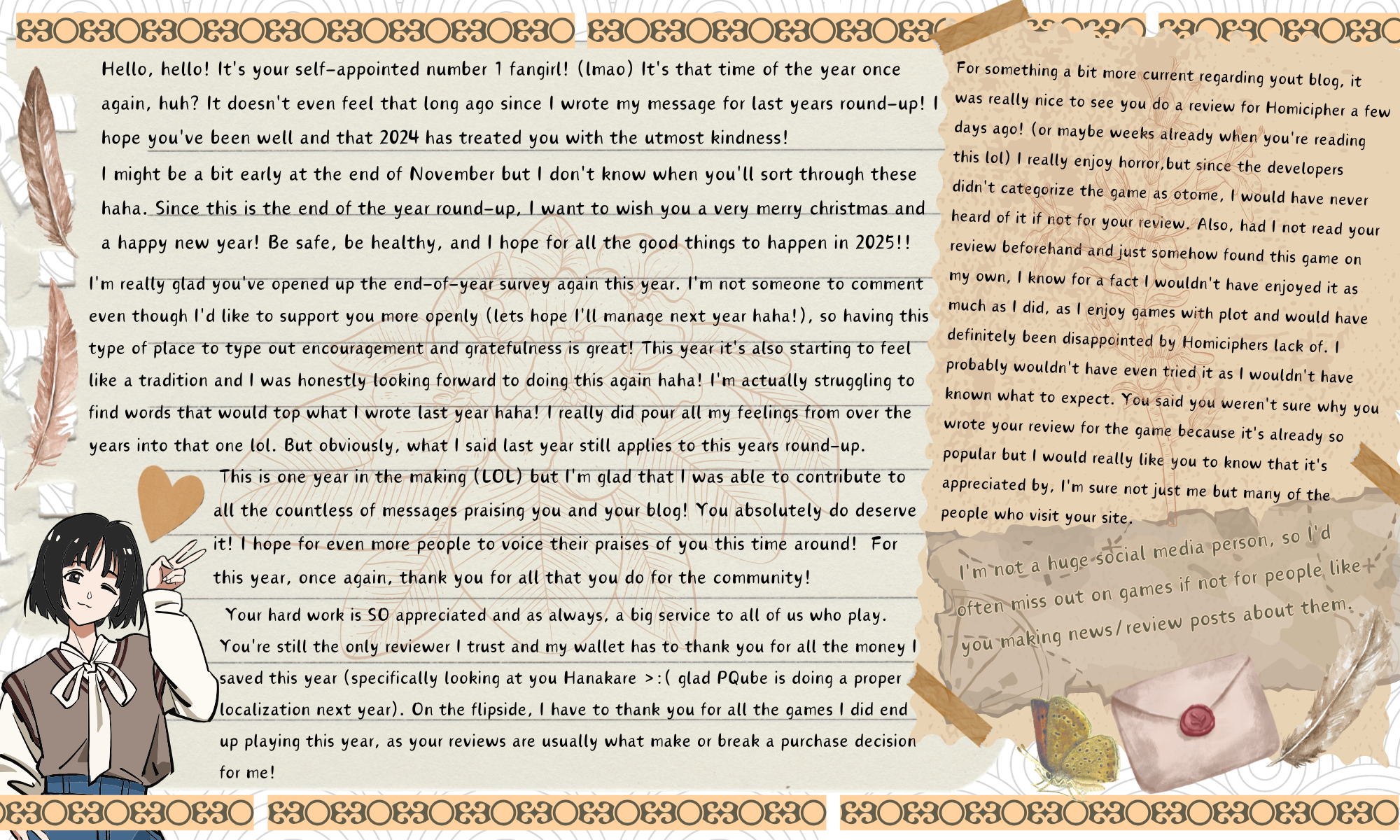 Thank you so much to everyone who left kind notes and messages in 2024! I treasure each and every comment here. The kindness and encouragement you all give motivate me to keep going, and I aim to improve each year as well. THANK YOU! THANK YOU! THANK YOU!