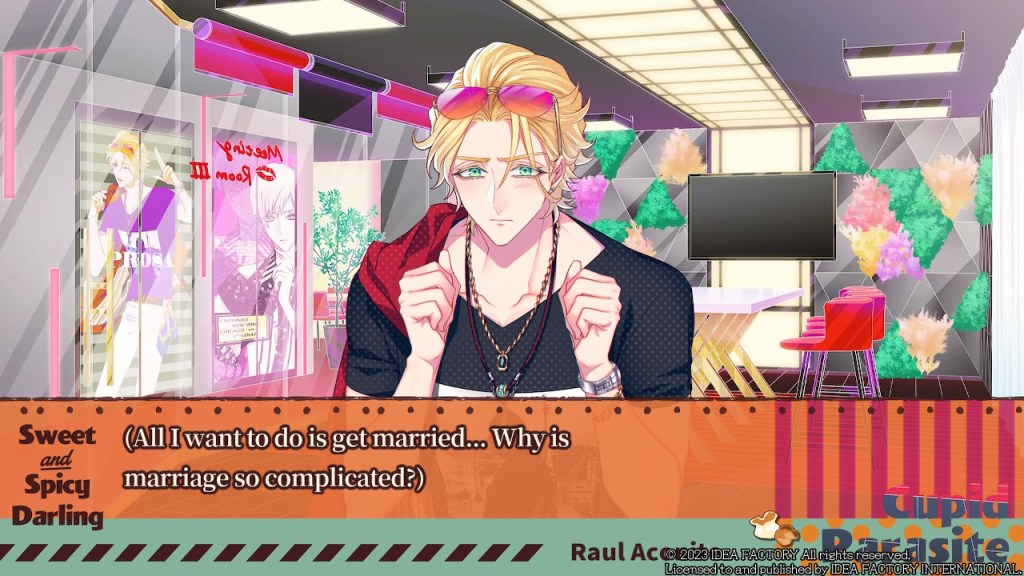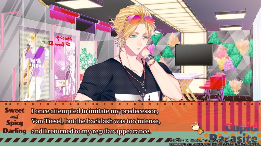 Prepare to be bombarded with explosions of vibrant pop colors! Just like the aesthetics of the first game, the UI for CP: Sweet and Spicy Darling is overpoweringly bright and bouncy! Everything is laden with hues of bright colors, and the menus seem to be all over the place. It’s anything but a tightly knit, cohesive, clean design. I don’t mean for this to sound harsh, by the way, because I actually enjoy this kind of aesthetic. (I mean, just look at this run-down website!) 😂 (cackles). However, just bear in mind that it’s definitely not suitable for those who are easily overwhelmed by excessive visual stimuli.