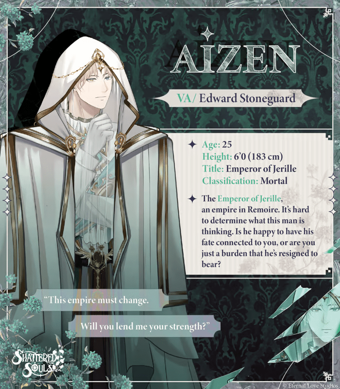 Indie developers Eternal Love Studios brings us their third commercial project, Shattered Souls, a dark fantasy otome game dedicated to bringing you worlds you can escape into and romances you will never forget. This title features seven fully voiced love interests, each with their own romance path. This project’s Kickstarter campaign launches today, September 10!