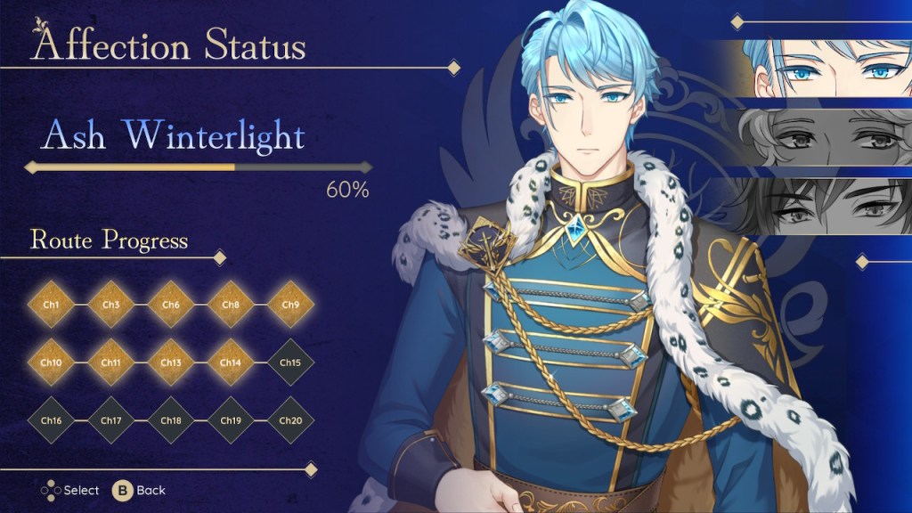 - Affection Status – Tracks the affection levels with the three love interests as the game progresses.