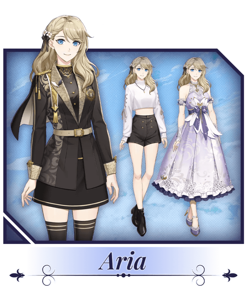 Aria Silverwings, the daughter of Duchess Helena and Duke Gaiwan Silverwings. She was raised as a human alongside her adopted brothers, Damien and Fynn. On her 17th birthday, she received an invitation to attend Celestia Academy, where it was revealed that she is actually a half Daemon and half Angelus.