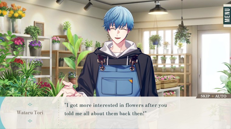 Most otome games will focus on one protagonist, with a choice of love interests. ‘Him, the Smile & bloom’ instead lets you choose between four unique couples and focus on their own story. Pick between Wataru and Serina, Ginnosuke and Ami, Hokuto and Fuuka, or Tenya and Miku.
