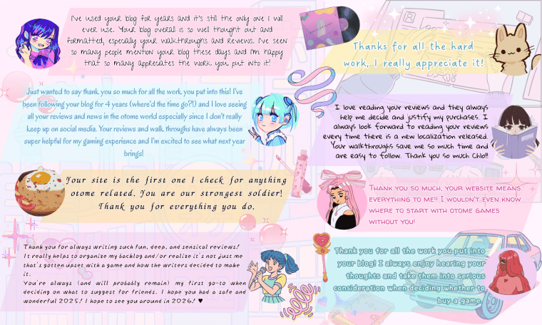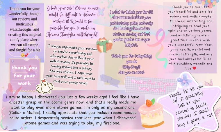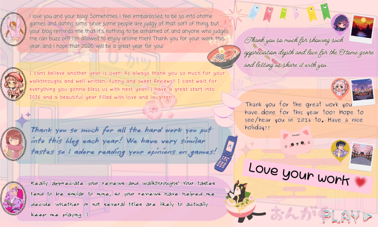 Welcome to Part 2 of my 2025 End-of-Year Round-Up. This second post is usually more casual and will focus on recaps and highlights from my 2025 so far, both within the otome gaming sphere and a few personal updates from yours truly.