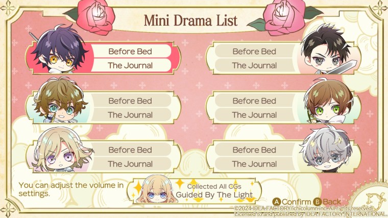 - Mini Drama List – (similar to drama CDs), these are short random slice-of-life dialogues featuring the LIs.