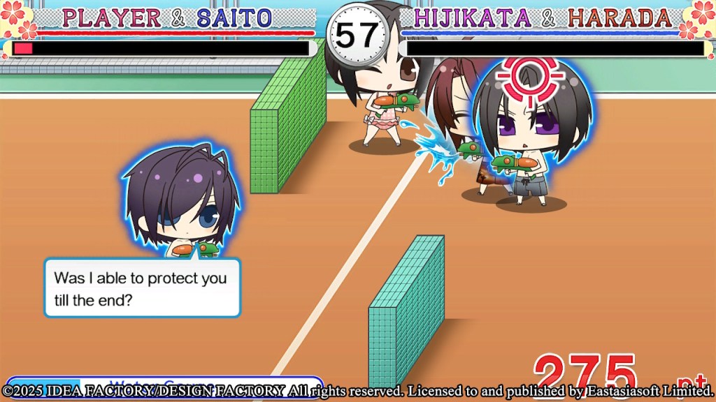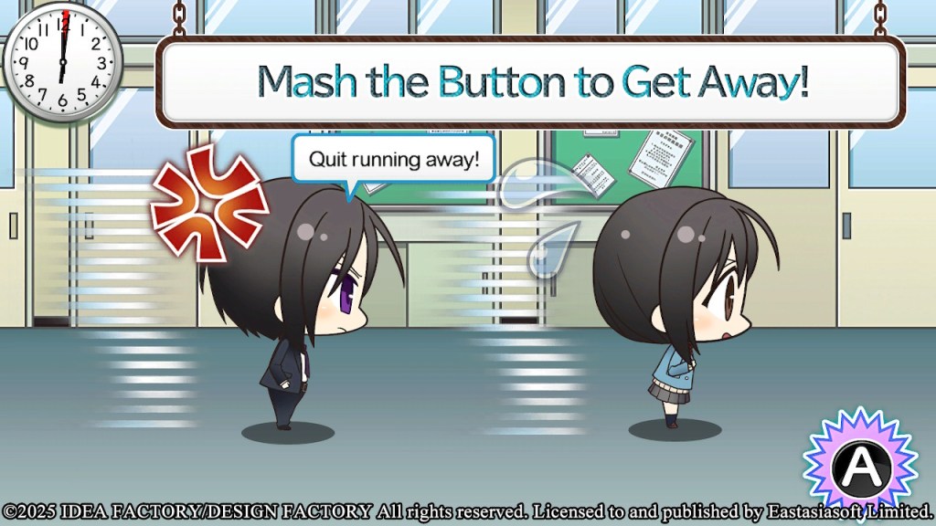 Hijikata’s mini-game is one of the easiest. He basically just chases you while you run away. Mash the A button to run fast, and you should be okay.