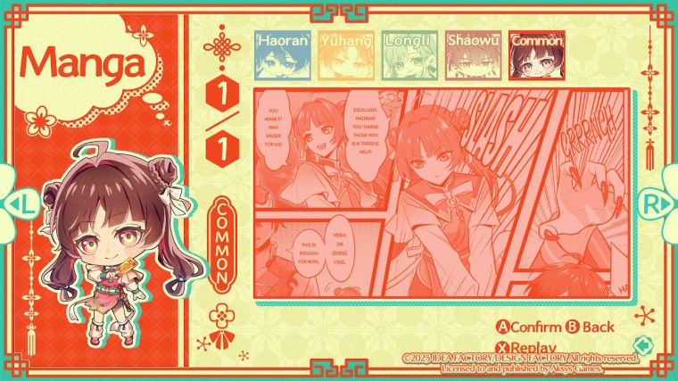 I absolutely loved the game’s Chinese kungfu aesthetics. The loading screen with Mimi, the game’s panda mascot, was sooo cute! And contrary to what everyone else is saying, I actually LOVED the recaps and previews at the end of each chapter. They reminded me so much of the animes I watched in the 90s. I grew up with those “Jikai Yokokus“,😆 so I really appreciated the devs including it in this game. If anything, it added a lovely nostalgic atmosphere throughout my playthroughs.🥹 Plus, the narration is voiced by Sugita! (all the more reason to enjoy this feature, if you ask me!)