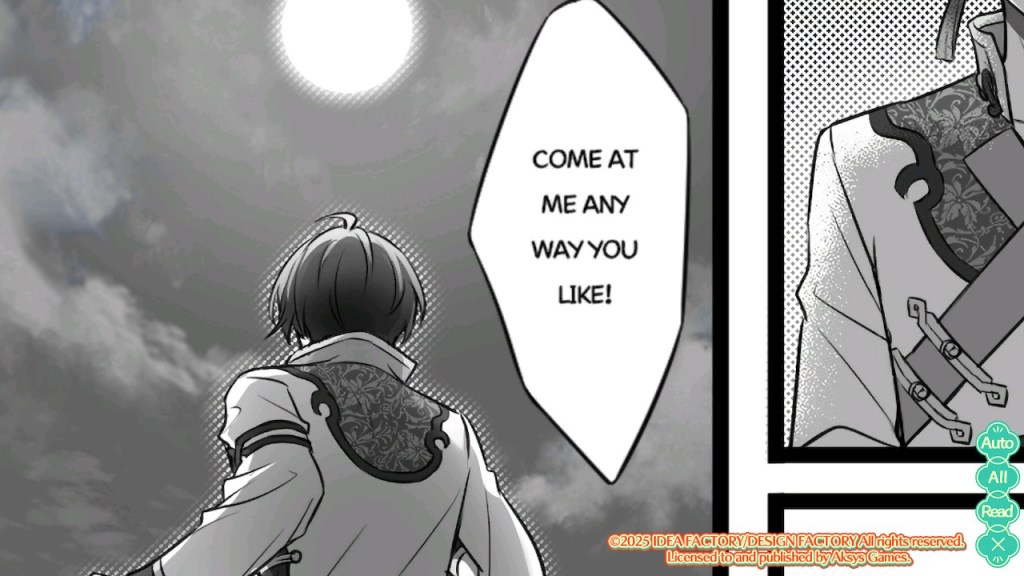 Otome Daoshi is an otome game centered around the theme of Chinese martial arts (aka wushu), so expect a lot of fight scenes, and marial art bouts in every route. What I liked so much here is that some of the combat scenes are illustrated in a manga-like fashion, which does a fantastic job of elevating the title’s action-packed scenarios (I legit inhaled all of them whenever they come up lol). The country of “Kayu,” where the story is set, also follows the motto “Might makes right,” so most of the main characters are predominantly strong and skilled fighters, heroine and side characters included.