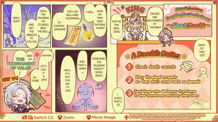 Shunlin is also a skilled fighter who can more than hold her own in battle. She’s a remarkable daoshi as well (even though she’s still in training), and she carries a very kind-hearted disposition. Her personality doesn’t really change across routes, which I appreciate, (I love that consistency). I really enjoyed her as the protagonist of this game, and I only wish the title had been longer so I could see more of her antics.