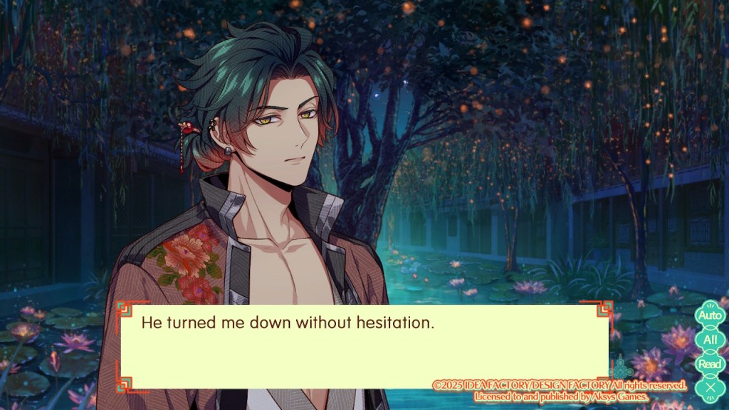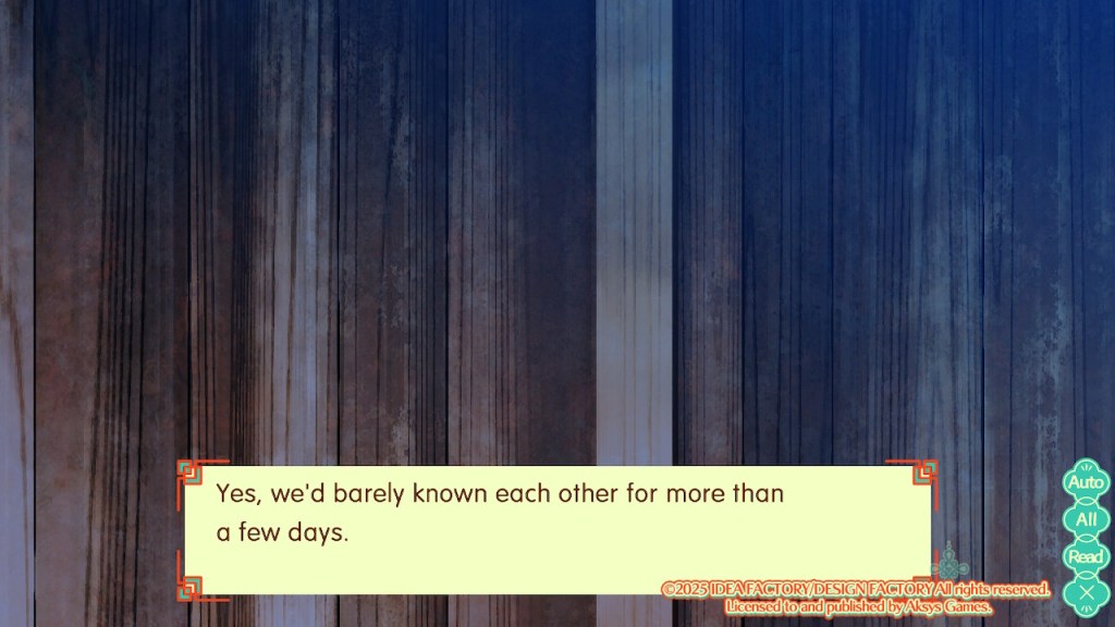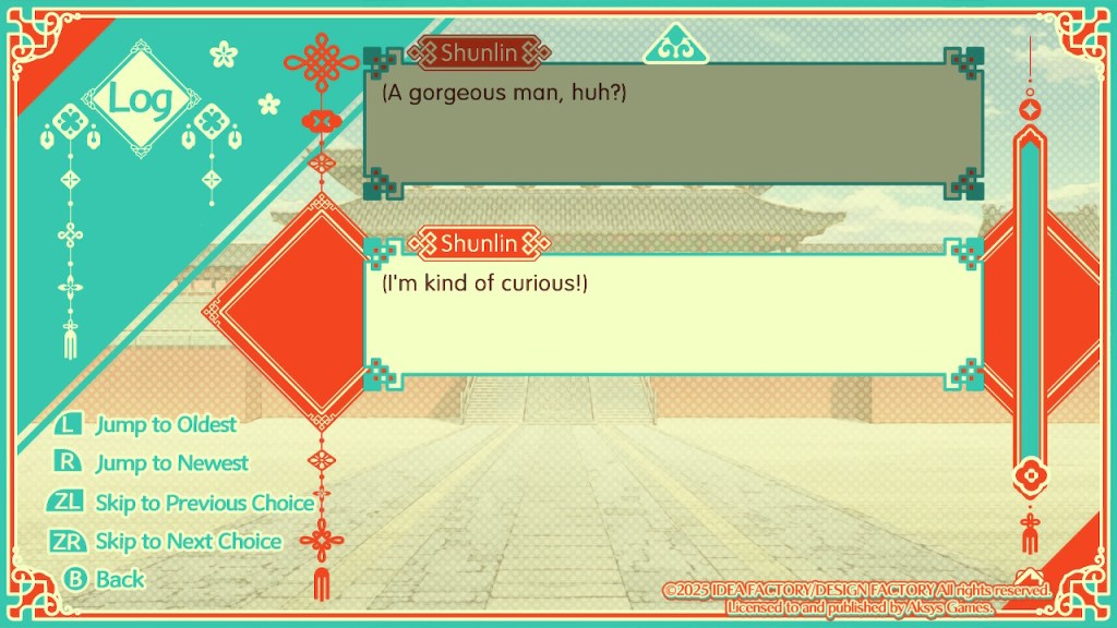 Perhaps I’m in the minority here, but I love Haoran as an LI. (I’m also very biased with his seiyuu so there’s that too lol) Normally, oniichan routes are a pretty hit or miss for me, and a lot of them tend to go completely batshit crazy (cackles). So I was shockingly pleased to see Haoran cruising along the greenest of green in his route. I’ve also really liked how refreshing his dynamic is with Shunlin. Their brother-sister + childhood friend relationship took an interesting approach that deviates from the usual brother-sister trope we commonly get in otome games. I’ll expand on that more in the spoiler section.